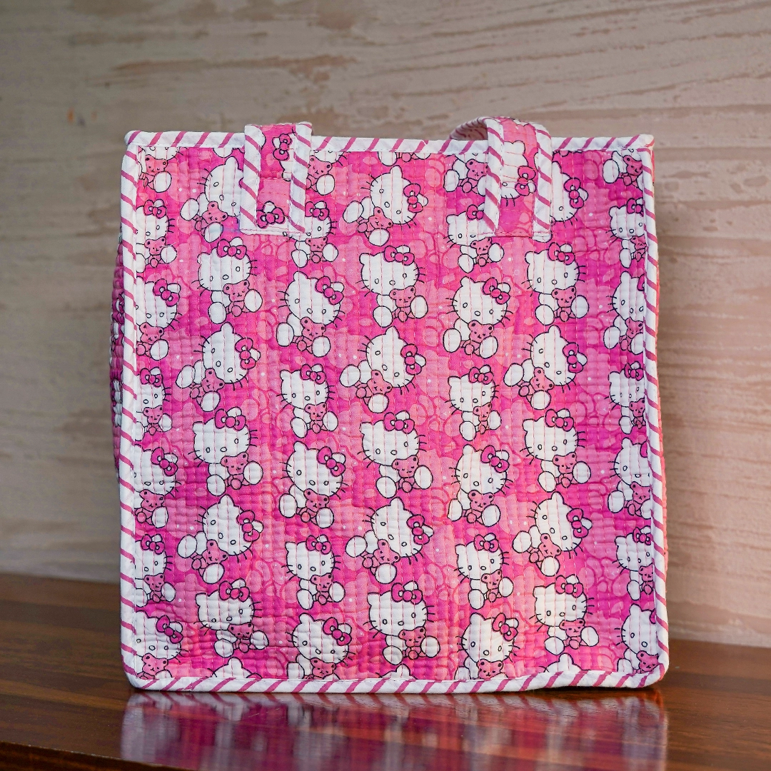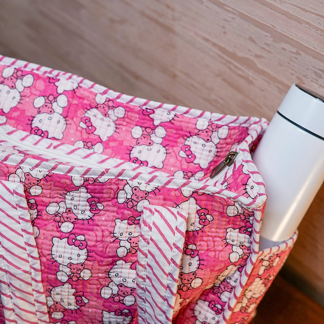 Our Mini Tote Bag is the ultimate accessory for kids on the go! This compact and practical bag, measuring 12" H x 12" W, is perfect for daily errands, shopping, school lunch bags or as a must-have for weekend trips. It features strong shoulder straps, inside waterproof lining and a secure zip closure for peace of mind. Crafted with care from 100% cotton, this reusable and washable tote is printed on both sides and includes an external pocket for a water bottle. Embrace sustainability with this plastic-free alternative, expertly handcrafted in India