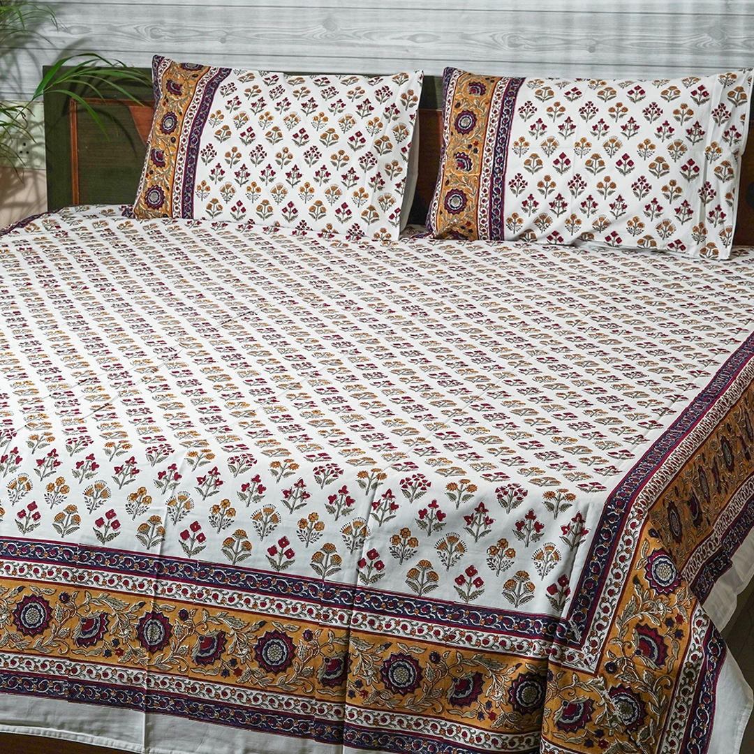 Transform your bedroom into a sanctuary of style and comfort with our exquisite Percale Cotton King Bedsheet Set. This elegant ensemble, featuring one generously sized 90 x 108 inch king bedsheet and two perfectly matching pillowcases, promises to elevate your sleep experience. Meticulously crafted from 100% premium Percale Cotton with a luxurious 300 thread count, this bedsheet offers a signature crisp, cool, and incredibly smooth feel. The breathable nature of percale cotton ensures optimal comfort throughout the year, keeping you cool on warm nights and comfortably cozy when the temperature drops. Each motif is a testament to the artistry of hand-block printing, a traditional technique performed by skilled artisans, ensuring a unique and authentic touch to every piece. The bedsheet is further adorned with a beautifully detailed border, adding an extra layer of visual interest and refined elegance. It is skin-friendly, hypoallergenic, and designed for lasting durability, ensuring it retains its vibrant patterns and luxurious feel even after numerous washes.