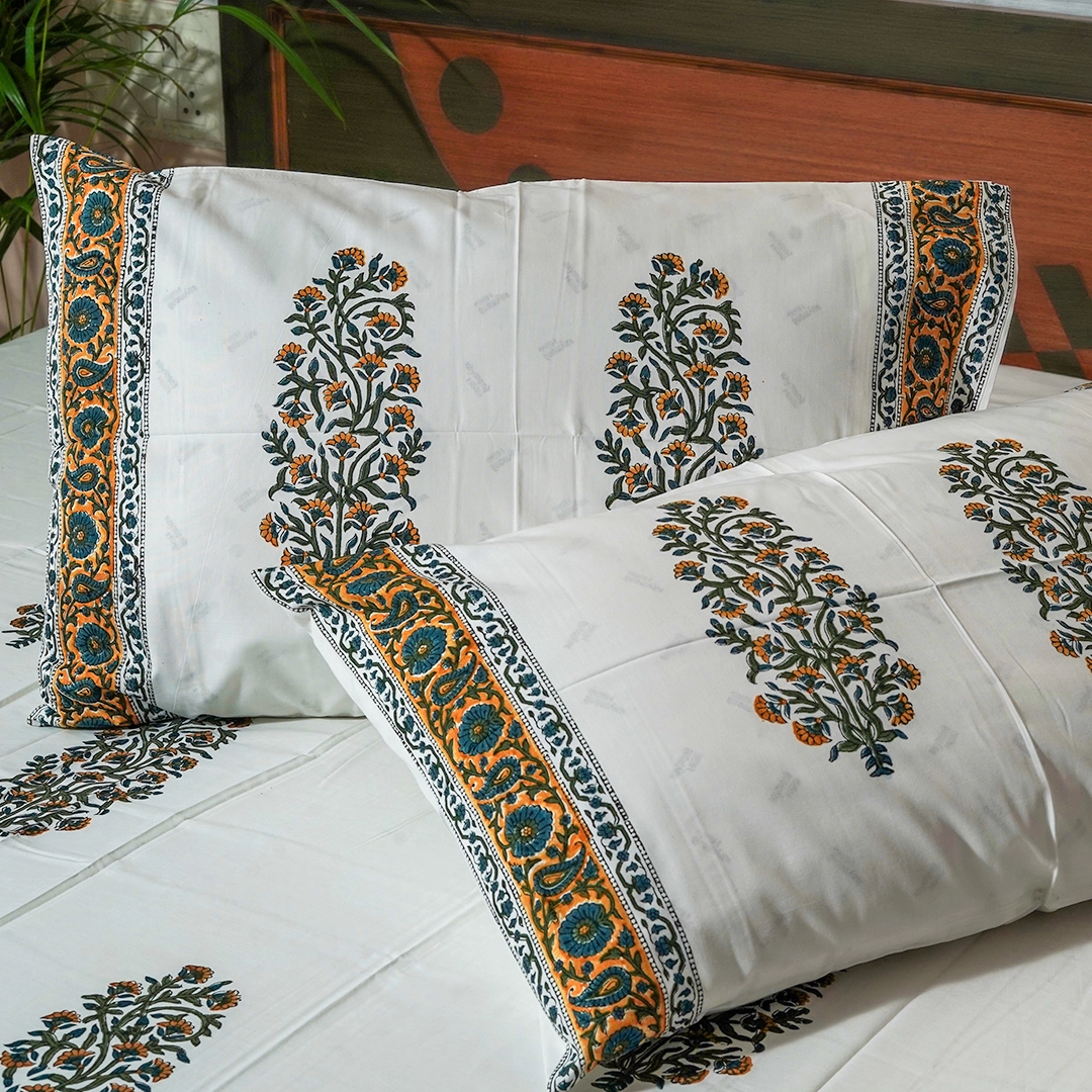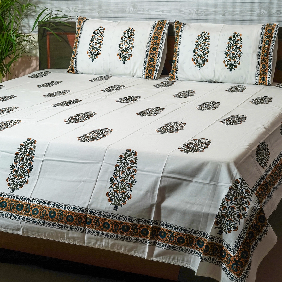 Transform your bedroom into a sanctuary of style and comfort with our exquisite Percale Cotton King Bedsheet Set. This elegant ensemble, featuring one generously sized 108 x 108 inch king bedsheet and two perfectly matching pillowcases, promises to elevate your sleep experience. Meticulously crafted from 100% premium Percale Cotton with a luxurious 300 thread count, this bedsheet offers a signature crisp, cool, and incredibly smooth feel. The breathable nature of percale cotton ensures optimal comfort throughout the year, keeping you cool on warm nights and comfortably cozy when the temperature drops. Each motif is a testament to the artistry of hand-block printing, a traditional technique performed by skilled artisans, ensuring a unique and authentic touch to every piece. The bedsheet is further adorned with a beautifully detailed border, adding an extra layer of visual interest and refined elegance. It is skin-friendly, hypoallergenic, and designed for lasting durability, ensuring it retains its vibrant patterns and luxurious feel even after numerous washes.